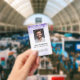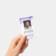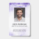 Professional vertical ID badge with a purple gradient design. Customise with your logo, employee photo, name, title, and barcode. Great for offices, events, schools, and secure building access.