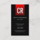 Vertical Red Stripe Black Unique Business Card