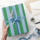 Vertical Stripe Pattern in Green and Light Blue Wrapping Paper