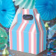 Favour box with the transgender pride flag with horizontal pink, blue, and, white stripes. Customisable.