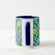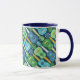 Ukuleles in oin blue and green against a dark blue background is a unique musical instrument design for string musicians, teachers and students.