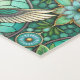 Vertically and horizontally oriented images show tropical leaf patterns in vibrant green, blue, and yellow hues on a white background, evoking a fresh, lively feel.