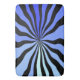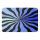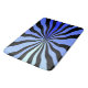 This bathroom rug (in your choice of 3 sizes) features a design that is bold and hypnotic in a fun-house mirror way, with thick black wavy rays zooming outward from a central point and alternating w/ rich shades of Prussian Blue, Cornflower Blue & Aquamarine. Fall into the black hole of COOL! (and check out HoMeArts coordinating products for your bed and bath.)