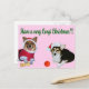 This Postcard features two of our Country Corgi pups, Mercy and Gimli, on a pink background, wearing “Santa” accessories. A red ball and a dog biscuit complete the design along with the words, “Have a Very Corgi Christmas” across the top.