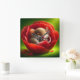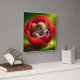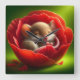 A cute, fluffy mouse peacefully sleeping inside a vibrant red poppy flower. The petals of the flower are soft and detailed, surrounding the mouse like a cosy bed. The background features gentle green hues, creating a serene and tranquil atmosphere, with a hint of sparkling light to add a magical touch.