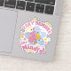 VERY DEMURE VERY MINDFUL Floral Vinyl-Cut Sticker, made popular by trending meme. Design shows bold pink typography, with half brain, half bouquet plus flowers and eyelashes. Ideal well-being and mindfulness gift. Matching gifts available.
