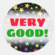 "VERY GOOD!" + Fun, Colourful Stars Pattern Sticke Classic Round Sticker