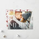 Red and White Rustic Winter Leaves and Berries Pattern with Merry Typography and Your Name in White Text Christmas Holiday Photo Invitation.