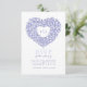 Purple blue very peri and white hand-drawn outline art in ink botanical wedding RSVP. Simple heart shaped floral line art design encircling your own monogram initials design. In pretty shades of blues and white. Matching invitations and other matching items and colour options are available. © Original hand ink drawing and design by Sarah Trett for www.mylittleedenweddings.com on Zazzle.