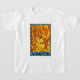 100% cotton so perfect for summer, It is a nicely designed t-shirt, the fabric is soft and the seams finished well, the body of the t shirt has no side seams. I bought a medium size for my two grandsons, aged 9 and 8 it will be slightly big on them but I would rather that than too small