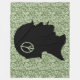 Snuggly blanket features camo background with Vietnam era soldier silhouette graphic that includes peace sign on helmet.