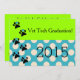 Vet Tech Graduation Invitations, lime and blue polka dots with dog paw emblems. Full customisable on front and back. Perfect for veterinary technician graduation.