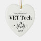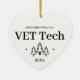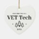 First Christmas as a VET Tech heart ornament for a coworker, friend, or family member. Elegant porcelain ceramic holiday ornaments in white with black lettering. Featuring Christmas trees and stars.