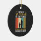 Veteran Grandpa ceramic ornament features a black silhouette of a veteran and child with text that reads Being a Veteran is an Honour Being a Grandpa is Priceless.