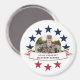 Honor your serviceman with this patriotic red white and blue three inch round magnets featuring a single centered circle photograph, a stars and stripes banner with a faux foil border and placeholders for your special service person's name and rank. Great gifts for parents and grandparents to put on their refrigerator! Available in other sizes.