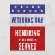 Veterans Day - Honouring all who served Holiday Postcard