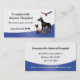 Photos of a bird, dog and cat on a white and blue modern and stylish looking background. Great card for veterinarians and pet grooming or pet grooming companies.