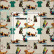 Veterinarian pattern with dogs, cats, ferrets, rabbits, parakeets, medical scrubs and stethoscopes.