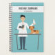 Cute design for veterinarians and veterinary clinics featuring Destei's cartoon illustration of a veterinarian man with some animals. The man is wearing a white laboratory coat while holding a grey cat and a cockatiel type parrot bird. There is also a cute little brown dog lying on a table. The background colour is blue. There are also two personalizable text areas.