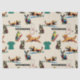 Veterinarian pattern with dogs, cats, ferrets, rabbits, parakeets, medical scrubs and stethoscopes.