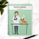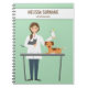 Cute design for veterinarians featuring Destei's cartoon illustration of a female veterinarian with some animals. The woman is wearing a white laboratory coat while holding a grey cat and a cockatiel type parrot bird. There is also a cute little brown dog lying on a table. The background colour is light green. There are also two personalizable text areas.