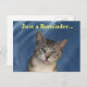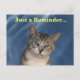 This postcard says, "Just a Reminder..." This postcard features a darling photograph of a part Siamese cat named Meece. Meece has beautiful blue eyes and is sitting with his head cocked to one side in front of a blue background. A perfect reminder postcard for your business needs. This reminder postcard is easily customisable by filling in the back with all the necessary client and business information.