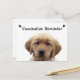 This "Vaccination Reminder" postcard is perfect to remind your clinic's clients of necessary vaccinations their pets may need. Featuring a darling photograph of a Golden Retriever puppy, this reminder card is easily customisable by filling in the back with all your client and business information.
