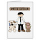 Fantastic design for a veterinarian, a vet - wearing his white coat - is flanked by a dog and a cat, with a sign above that says, "Vet's Office".