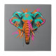 Vibrant Abstract Elephant with Bold Teal Ceramic Tile