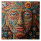 Vibrant Abstract Ethnic Huichol Tribal Pattern Ceramic Tile