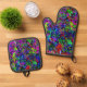 Vibrant abstract pot holder and oven mitt,Blast Oven Mitt & Pot Holder Set