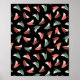 Vibrant Apple Slice Fruit Pattern Black Poster