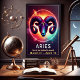 • This striking Aries zodiac poster features a vibrant ram design against a colourful background. Layers can be removed or replaced.