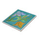 Reproduced from an antique Jugendstil Art Nouveau tile dating to circa 1900. Shades of lilac, green, yellow, gold, and a bit of orange are captivating against the brilliant peacock blue background. Available in 4.5 and 6 inch tiles for use on walls, backsplashes, and fireplace surrounds. Also makes great coasters, trivets, decorative boxes, and other decorative and giftable items. Note that, although this tile looks like it is dimensional just like the original, this reproduction is actually flat, printed in a faux relief or trompe l'oeil ("fool the eye") style that captures the look of the raised detailing and crazed patina of the original on a smooth surfaced ceramic tile.