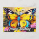 This charming birthday postcard showcases a whimsical illustration of a butterfly in flight. You are welcome to include your message on the back of this postcard.