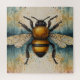 beautiful and intricate pattern of bees illustrated in a watercolour style. The bees are detailed with realistic textures, showcasing their fuzzy bodies and delicate wings. The background consists of splashes of blue, orange, and yellow, adding a dynamic and artistic touch to the design. The repeating pattern creates a visually appealing and cohesive look, perfect for use in textiles, wallpapers, or other creative projects.