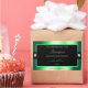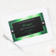 The design features a noble shimmering green frame with fine decor lines, on a plain black background.