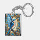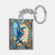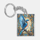 Vibrant Blue Bird Perched on Stained Glass Key Ring