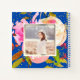 Trendy blue photo notebook with lovely watercolor blush floral bouquet and faux gold.