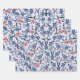 Vibrant Blue Floral Patterns with Green Vines Wrapping Paper Sheet