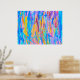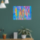 A dynamic and colourful abstract design featuring a harmonious blend of vivid blues, yellows, pinks, and purples. The piece captures an energetic flow of dripping paint-like strokes, evoking a sense of movement and playfulness. Perfect for those who love bold, expressive designs full of joy and colour.