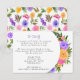 Elements: tropical floral wreaths surrounding your names an tetail. Names are in a whimsical script, while details are in a modern sans serif font. Colours: purple, pink, yellow, green, orchid, plum, magenta, fuschia, lemon, Themes: bright, tropical, beach, destination, romantic, bohemian, cheerful, modern, casual. Collection: Vibrant Casual Magenta Violet Yellow Wedding Collection Product Type: Enclosure Card
