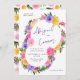 Elements: tropical floral wreaths surrounding your names an tetail. Names are in a whimsical script, while details are in a modern sans serif font. Colours: purple, pink, yellow, green, orchid, plum, magenta, fuschia, lemon, Themes: bright, tropical, beach, destination, romantic, bohemian, cheerful, modern, casual. Collection: Vibrant Casual Magenta Violet Yellow Wedding Collection Product Type: Wedding Invitations
