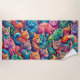Vibrant Cat Dreamscape – Psychedelic Boho Beach Towel