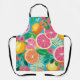 A bright apron featuring vibrant citrus slices, lush green leaves, and delicate tropical florals. The fresh palette of pink, orange, yellow, and cool blues adds a cheerful, summery touch to cooking, baking, grilling, and gift‑ready kitchen moments. Ideal for women who love colorful, uplifting, beautifully illustrated designs that bring joy to everyday culinary creativity.