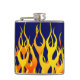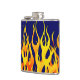 Vibrant Classic Racing Flames on Navy Blue Hip Flask