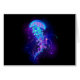 Large, blue, artistically drawn, glowing, bright jellyfish, with long tentacles on black background with purple bioluminescence. Luminous jellyfish.
