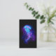 Large, blue, artistically drawn, glowing, bright jellyfish, with long tentacles on black background with purple bioluminescence. Luminous jellyfish.