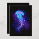 Large, blue, artistically drawn, glowing, bright jellyfish, with long tentacles on black background with purple bioluminescence. Luminous jellyfish.