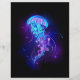 Large, blue, artistically drawn, glowing, bright jellyfish, with long tentacles on black background with purple bioluminescence. Luminous jellyfish.